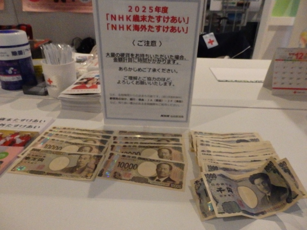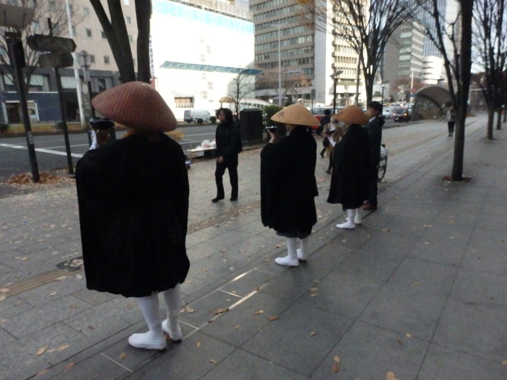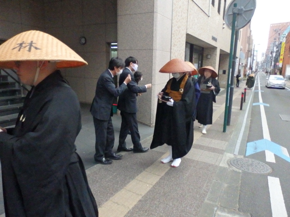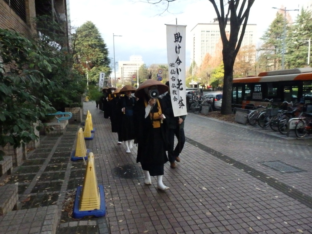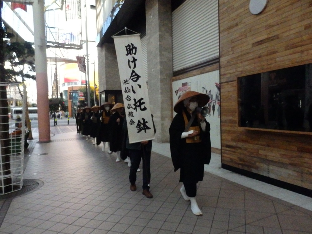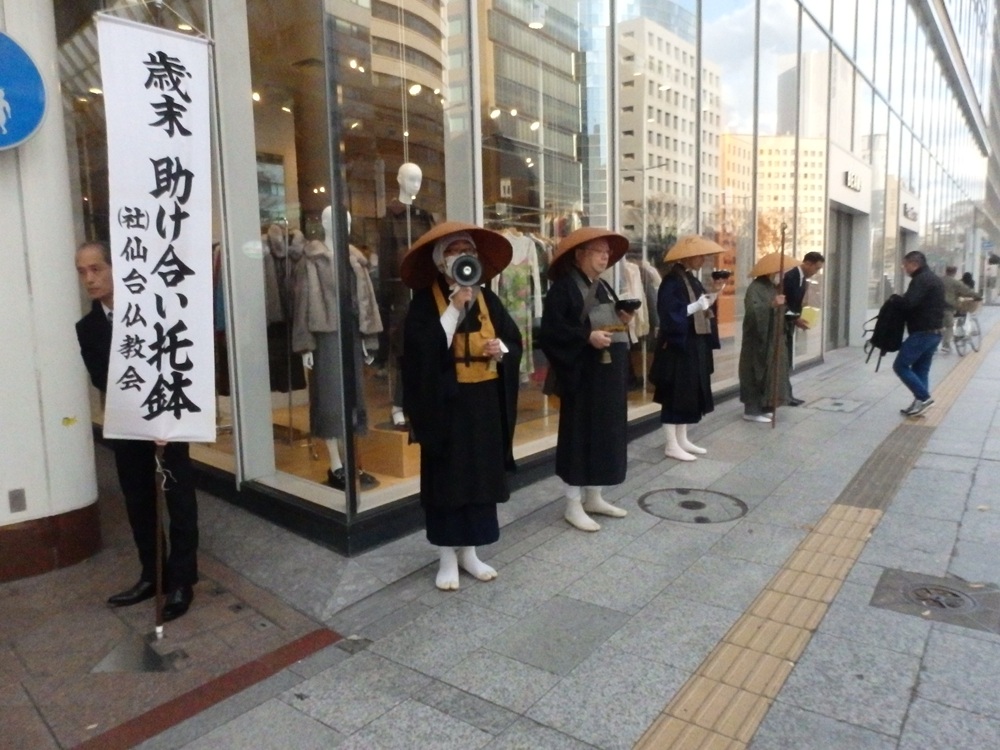 令和6年12月1日にNHK歳末助け合い運動の托鉢を、中央清月記様を出発し、県庁前から三越、東二番町を南に広瀬通りからサンモール一番町藤崎前から大町商店街を通り東二番町の藤崎タワービルの前で静止しての募金活動をし、中央清月記様をゴールとした運動をいたしました。